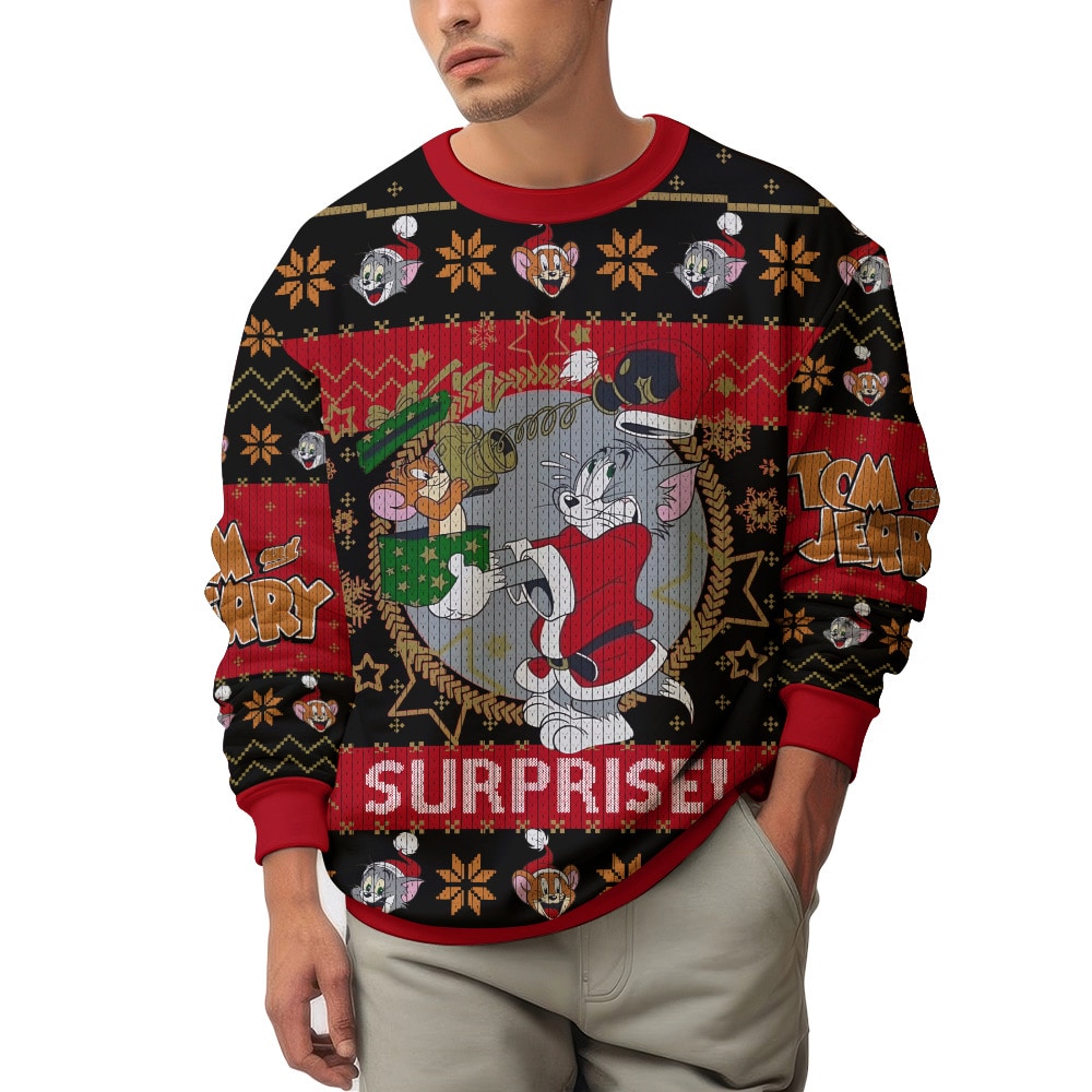 Xmas Surprise! Tom And Jerry Ugly Christmas Sweater